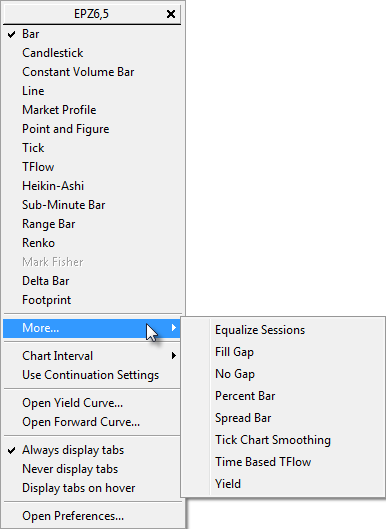 You can also right-click the entry field to select from a portfolio or to see most recently used symbols and their chart types.