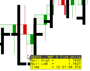 Both combined (Max Null Bricks=0) and uncombined (Max Null Bricks>0) null MBF bricks are displayed as a vertical dotted line left-aligned to the next non-null MBF Brick (a brick with actual traded volume). The color of null MBF brick is the same as the color of the next non-null MBF brick: