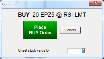 You can place an order at the value or as an offset. The system automatically modifies the order price based on the study; it continues to do so when partially filled.