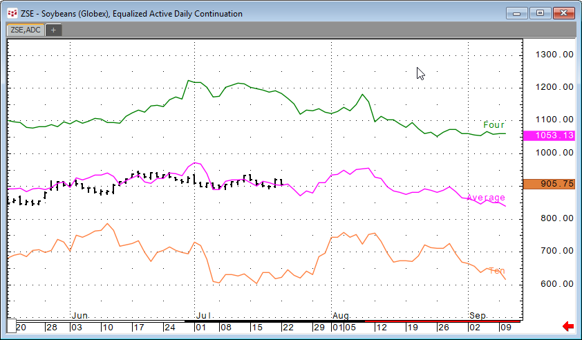 Here, the four-year, ten-year, and the average of the two are displayed. The chart was dragged to the left to display how the historical data unfolded for the next two months.