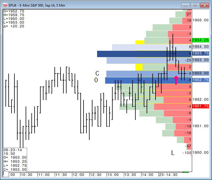 The Volume Profile study can also incorporate Delta Bar information.